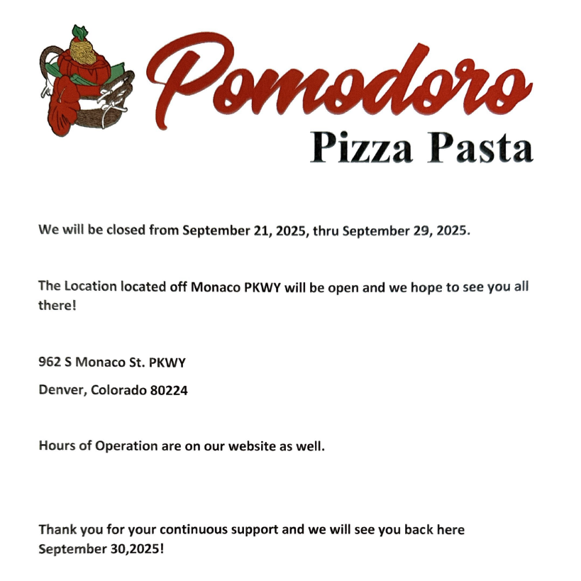 Proudly family-owned and serving the heart of Colorado, Pomodoro’s brings the taste of Italy to your table. From hand-tossed pizzas to classic pasta dishes made with love, every meal is a celebration of tradition, flavor, and family.